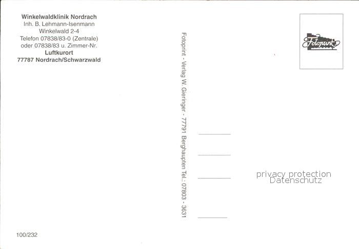 72586608 Nordrach Winkelwaldklinik postalisch nicht gelaufen Erhaltung siehe scans [AntonD74] KatCode: 11110008317085