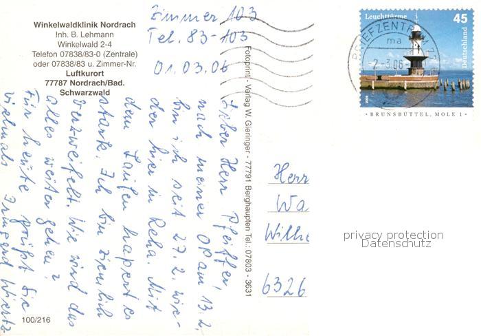 73176540 alte Postkarte Nordrach Winkelwaldklinik Schwarzwald postalisch gelaufen Erhaltung siehe scans [FriedD77] KatCode: 11110008317085