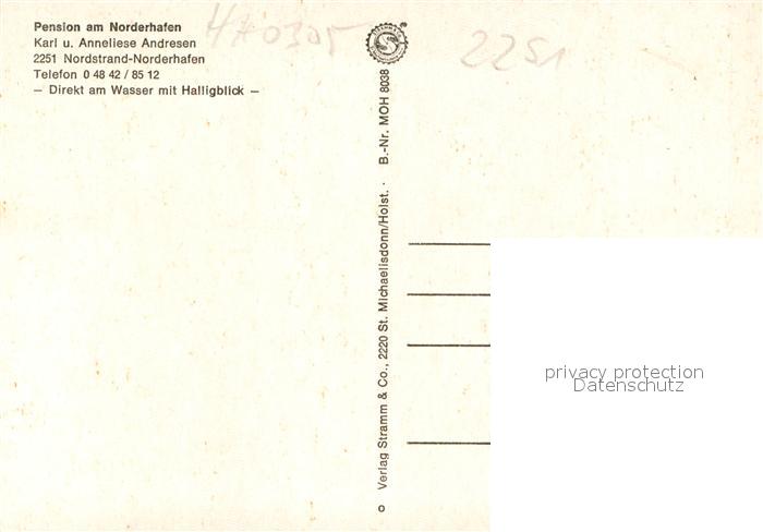 73641536 Nordstrand Pension am Norderhafen postalisch nicht gelaufen Erhaltung siehe scans [FriedD77] KatCode: 11110001054091