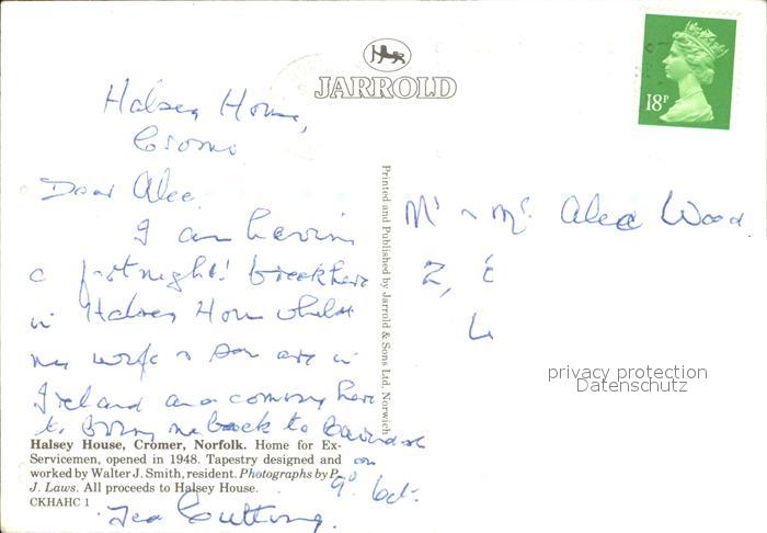 old postcard Norfolk Norwich Halsey House postalisch gelaufen Erhaltung siehe scans