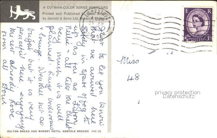 old postcard Norfolk Norwich Oulton Broad and Wherry Hotel postalisch gelaufen Erhaltung siehe scans