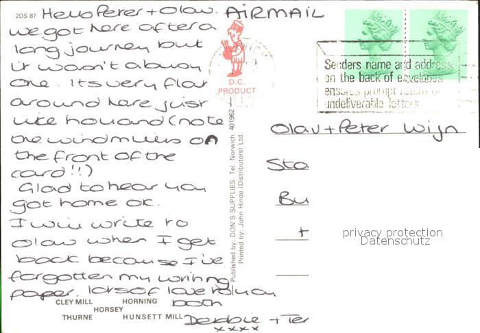 old postcard Norfolk Norwich Windmuehlen postalisch gelaufen Erhaltung siehe scans