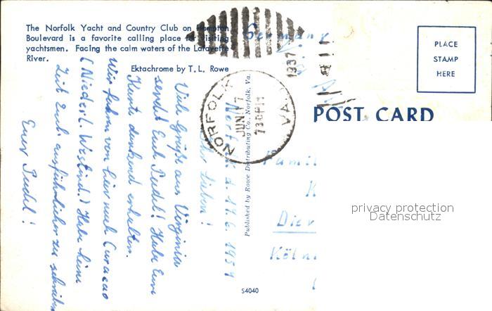 72415846 old postcard Norfork Yacht and Country Club postalisch gelaufen Erhaltung siehe scans KatCode: 14140040000000