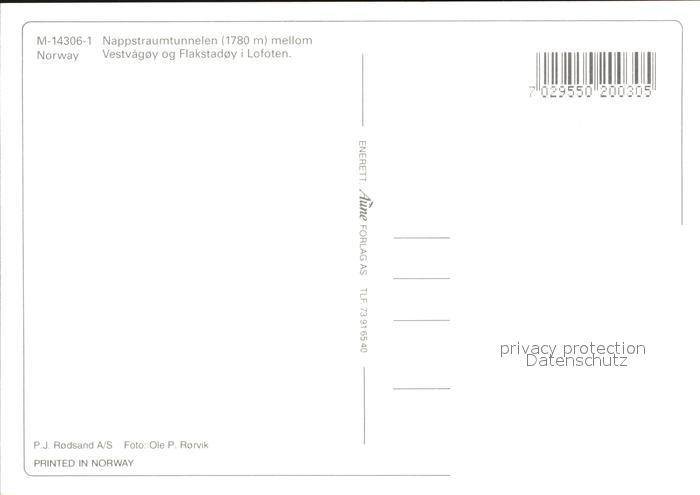 Norge Norwegen Nappstraumtunnelen I Lofoten Fliegeraufnahme postalisch nicht gelaufen Erhaltung siehe scans