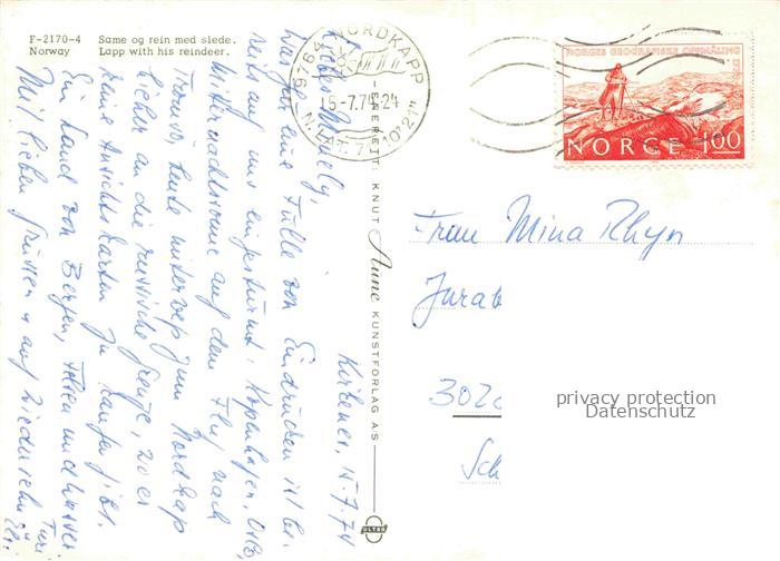 74009531 old postcard Norge Norwegen Norway Same og rein med slede postalisch gelaufen Erhaltung siehe scans [WerneD78] KatCode: 11380