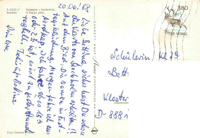 74142601 old postcard Norge Norwegen Norway Samepar i brudestas Happy Pair postalisch gelaufen Erhaltung siehe scans [IrynaD87] KatCode: 11380