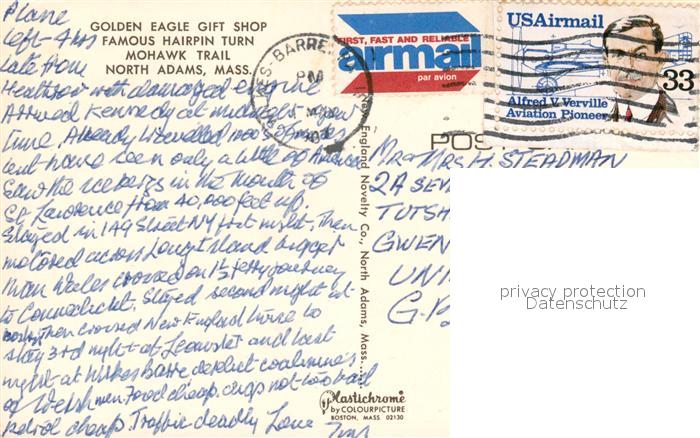 73295359 old postcard North Adams Massachusetts Golden Eagle Gift Shop postalisch gelaufen Erhaltung siehe scans [KathaD81] KatCode: 14140230000000