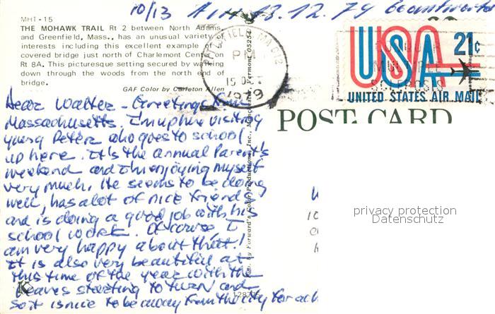 72925347 old postcard North Adams Massachusetts The Mohawk Trail water fall postalisch gelaufen Erhaltung siehe scans [FriedD77] KatCode: 14140230000000