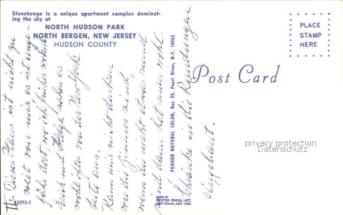 72444353 North Bergen North Hudson Park Stonehenge Apartment Complex postalisch nicht gelaufen Erhaltung siehe scans KatCode: 14140320000000