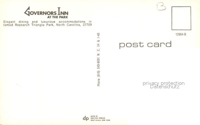 73057254 North Carolina US-State Governors Inn at the Park postalisch nicht gelaufen Erhaltung siehe scans [WerneD78] KatCode: 14140350000000
