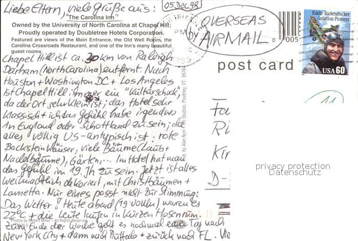 72420409 old postcard North Carolina US-State The Caroliner Inn Hotel postalisch gelaufen Erhaltung siehe scans KatCode: 14140350000000