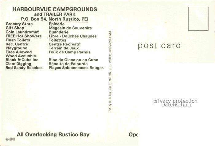 74091422 North Rustico Prince Edward Island Canada Harbourvue Campgrounds and Trailer Park Fliegeraufnahme postalisch nicht gelaufen Erhaltung siehe scans [WerneD78] KatCode: 14110