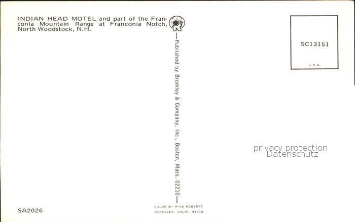 72278251 North Woodstock Indian Head Motel Franconia Mountain Range at Franconia Notch postalisch nicht gelaufen Erhaltung siehe scans KatCode: 14140310000000