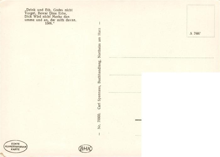 73900705 Northeim Altes Buergerhaus postalisch nicht gelaufen Erhaltung siehe scans [WerneD78] KatCode: 11110003155011