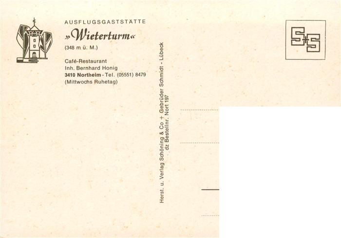 73875397 Northeim Cafe Restaurant Wieterturm Gaststube Bar Terrasse postalisch nicht gelaufen Erhaltung siehe scans [FriedD77] KatCode: 11110003155011