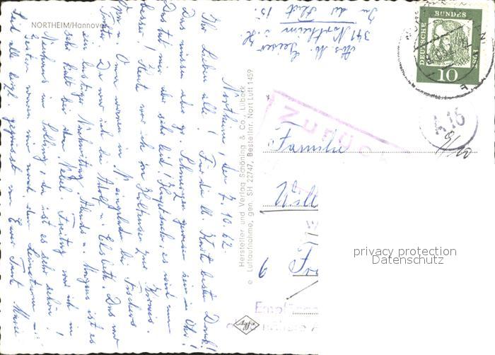 72007230 alte Postkarte Northeim Fliegeraufnahme postalisch gelaufen Erhaltung siehe scans KatCode: 11110003155011