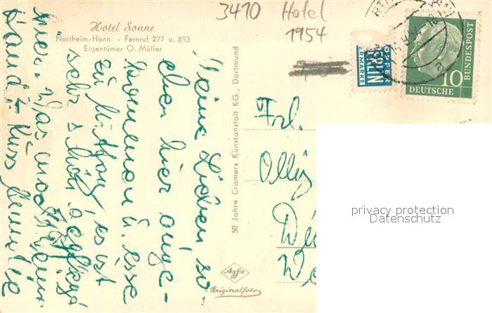 73703054 alte Postkarte Northeim Hotel Sonne Innen postalisch gelaufen Erhaltung siehe scans [LiesaD40] KatCode: 11110003155011