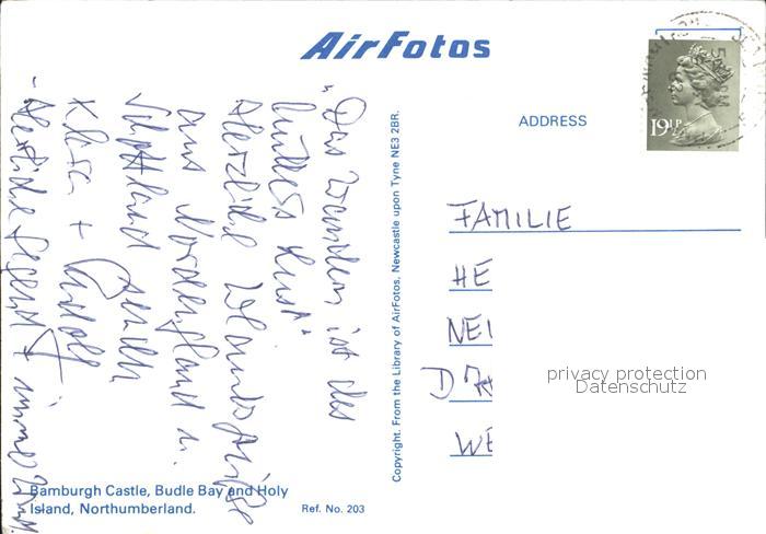 old postcard Northumberland Heath Bamburgh Castle Fliegeraufnahme postalisch gelaufen Erhaltung siehe scans