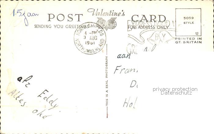 old postcard Northumberland Heath Saville Street Fish-Quay Westend-Park postalisch gelaufen Erhaltung siehe scans