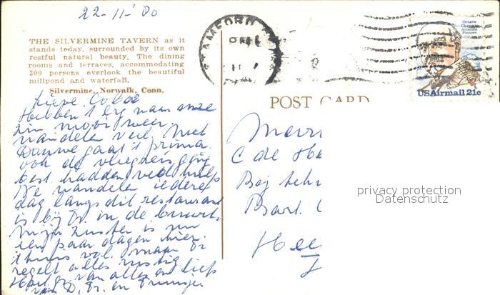 72286333 old postcard Norwalk Connecticut Silvermine Tavern postalisch gelaufen Erhaltung siehe scans KatCode: 14140070000000