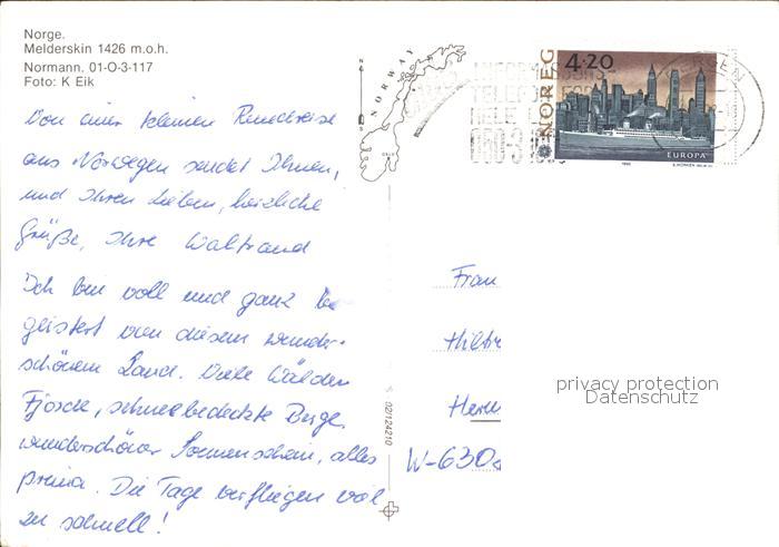 old postcard Norwegen Norge Melderskin postalisch gelaufen Erhaltung siehe scans