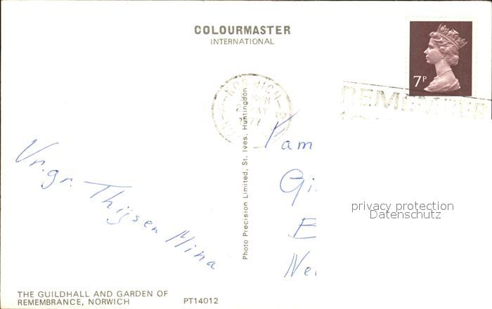 old postcard Norwich UK Guildhall and Garden of Remembrance postalisch gelaufen Erhaltung siehe scans