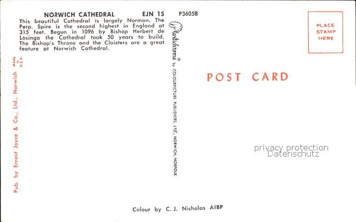 Norwich UK Kathedrale postalisch nicht gelaufen Erhaltung siehe scans