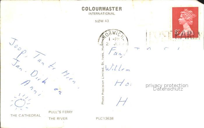 old postcard Norwich UK The Cathedral Pulls Ferry The River postalisch gelaufen Erhaltung siehe scans