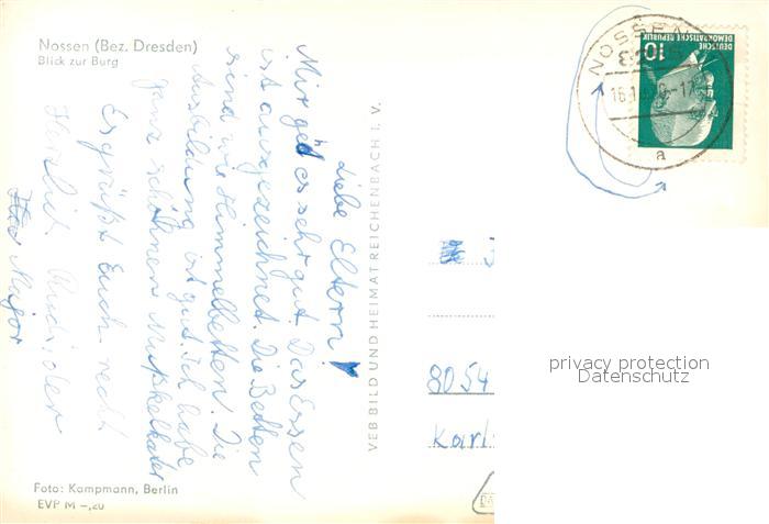 73617895 alte Postkarte Nossen Blick zur Burg postalisch gelaufen Erhaltung siehe scans [WerneD78] KatCode: 11110014280280