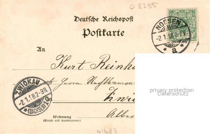 33707851 alte Postkarte Nossen Hotel Stadt Dresden Bergschloesschen Rossbergs Weinstube Bahnhof Schloss mit Kriegerdenkmal postalisch gelaufen Erhaltung siehe scans [WerneD78] KatCode: 11110014280280