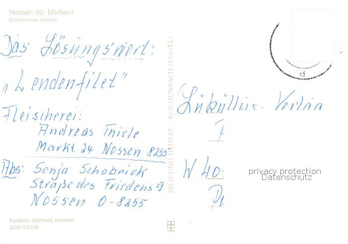 73017794 alte Postkarte Nossen Klosterruine Altzella postalisch gelaufen Erhaltung siehe scans [WerneD78] KatCode: 11110014280280