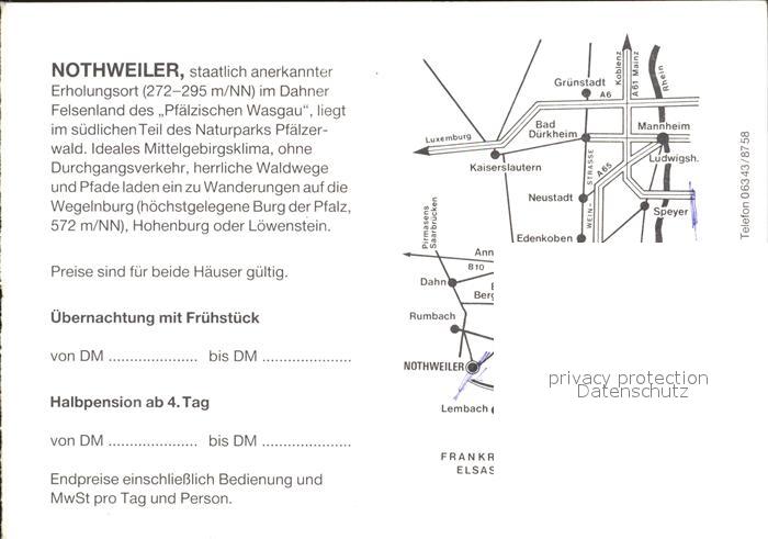72009151 Nothweiler Cafe Pension Kraft Gaststube Terrasse Panorama postalisch nicht gelaufen Werbekarte (keine Postkarte) Erhaltung siehe scans KatCode: 11110007340034