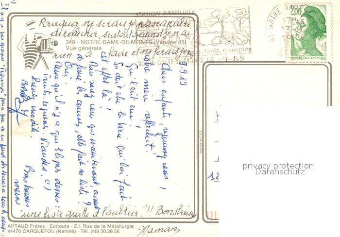 13365022 carte postale Notre-Dame-de-Monts Vue aérienne postalisch gelaufen Erhaltung siehe scans [FriedD77] KatCode: 11170085385164
