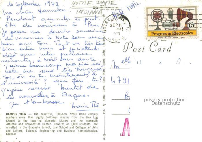 74110774 old postcard Notre Dame Indiana USA Campus View Luftbild Stadion postalisch gelaufen Erhaltung siehe scans [IrynaD87] KatCode: 14140160000000