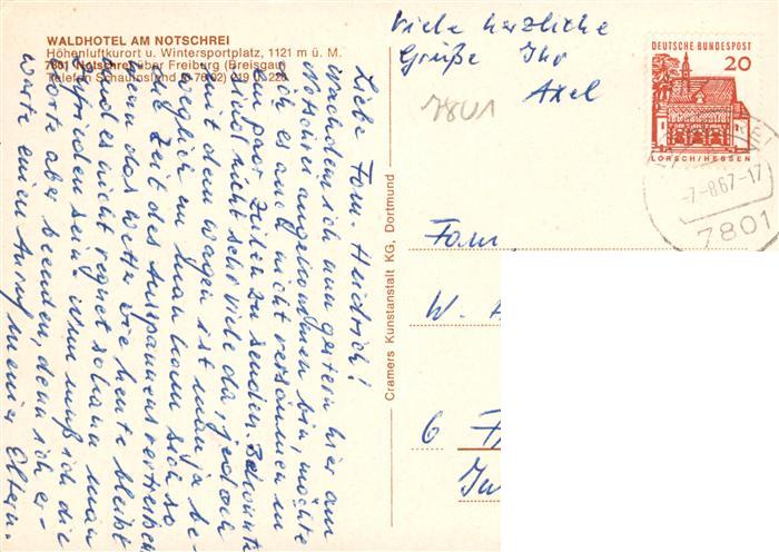 73932109 alte Postkarte Notschrei Todtnau Waldhotel am Notschrei Schwarzwald postalisch gelaufen Erhaltung siehe scans [FriedD77] KatCode: 11110008336087