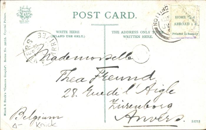 10990491 old postcard Nottingham UK Crystal Palace [Stempelabschlag] postalisch gelaufen KatCode: 11570
