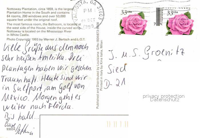 72672130 old postcard Nottoway Plantation Details postalisch gelaufen Erhaltung siehe scans [WerneD78] KatCode: 14140490000000