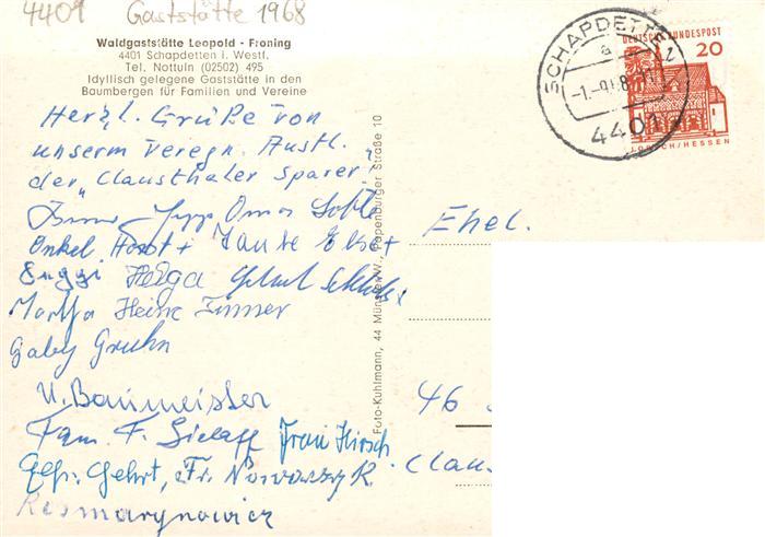 73894303 alte Postkarte Nottuln Longinusturm Waldgaststaette Leopolds Hoehe UKW Sender Jugendherberge Baumbergeblick postalisch gelaufen Erhaltung siehe scans [WerneD78] KatCode: 11110005558032