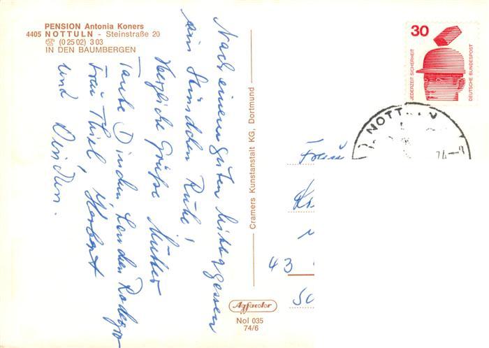 73902918 alte Postkarte Nottuln Pension Antonia Koners Gaststube Garten postalisch gelaufen Erhaltung siehe scans [WerneD78] KatCode: 11110005558032