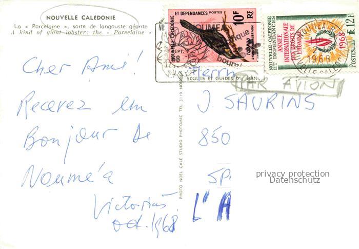 Nouvelle Caledonie New Caledonia Neukaledonien La Porcelaine sorte de langouste geante postalisch gelaufen Erhaltung siehe scans [WerneD78] alte Postkarte Wern Katcode 19120