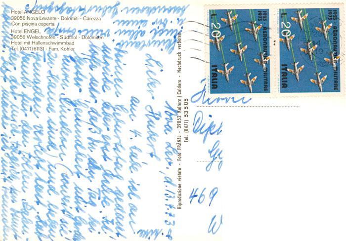73905561 old postcard Nova Levante Bozen Bolzano Suedtirol IT Hotel Angelo postalisch gelaufen Erhaltung siehe scans [WerneD78] KatCode: 11240