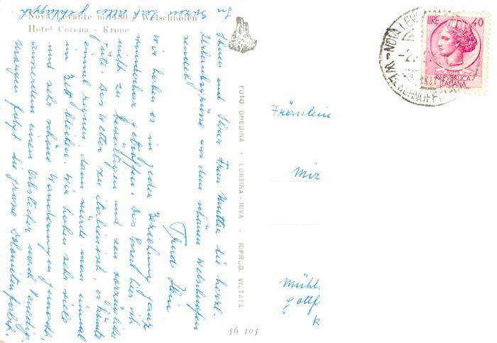73908390 old postcard Nova Levante Bozen Bolzano Suedtirol IT Hotel Corona postalisch gelaufen Erhaltung siehe scans [WerneD78] KatCode: 11240