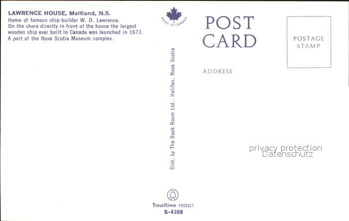 Nova Scotia Lawrence House Maitland postalisch nicht gelaufen Erhaltung siehe scans