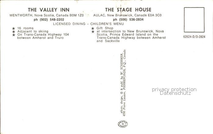 Nova Scotia The Valley Inn and The Stage House New Brunswick postalisch nicht gelaufen Erhaltung siehe scans