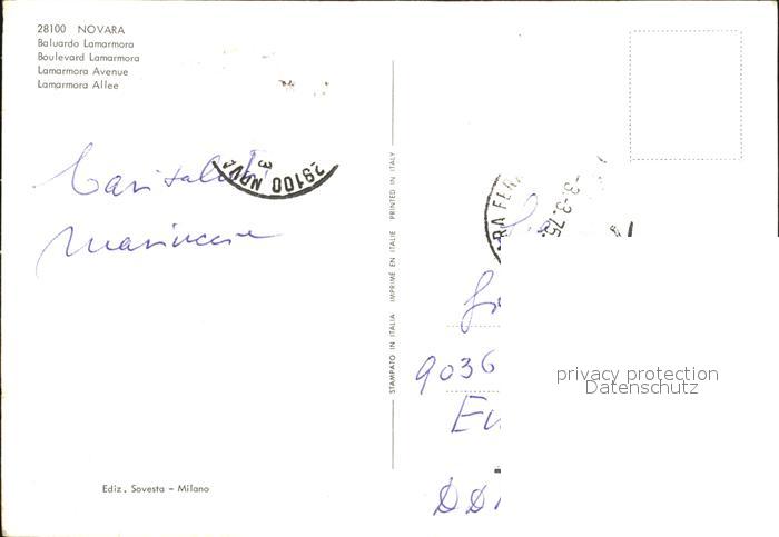 old postcard Novara Lamarmora Platz postalisch gelaufen Erhaltung siehe scans