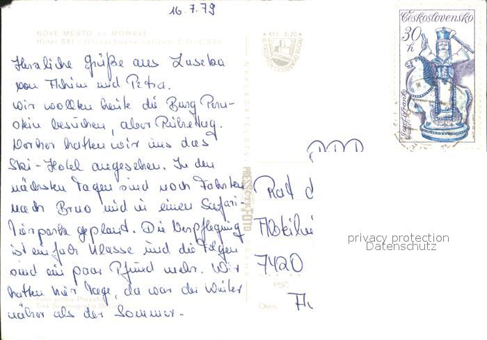 old postcard Nove Mesto na Morave Hotel Ski Restaurant Bar postalisch gelaufen Erhaltung siehe scans