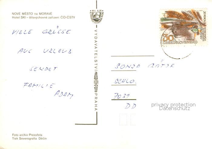 old postcard Nove Mesto na Morave Hotel Ski postalisch gelaufen Erhaltung siehe scans [LiesaD40]