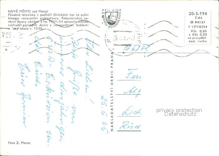 old postcard Nove Mesto nad Metuji Ansicht postalisch gelaufen Erhaltung siehe scans [KathaD79]