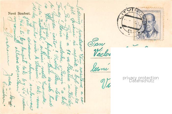 73853340 Nove Straseci CZ Teilansichten Kirche Natur Partie am See postalisch gelaufen Erhaltung siehe scans [FriedD77] old postcard Frie Katcode 11520