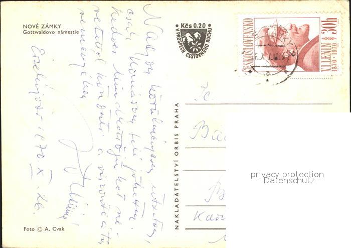 old postcard Nove Zamky Gottwaldovo namestie postalisch gelaufen Erhaltung siehe scans